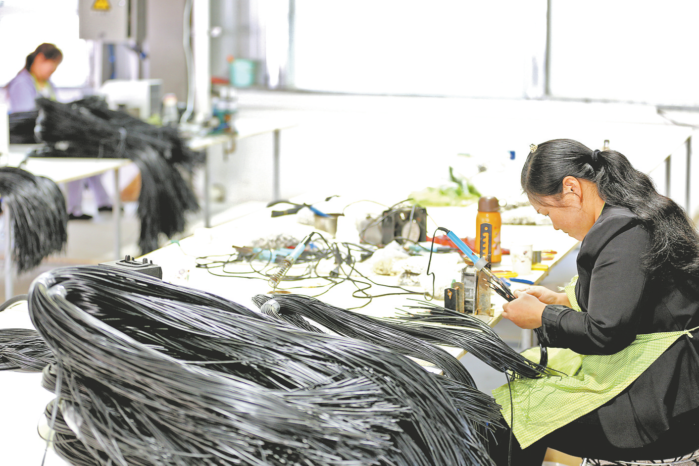 社區(qū)工廠為農(nóng)村剩余勞動力提供了就業(yè)機(jī)會。圖為留守婦女正在忙碌地組裝產(chǎn)品。