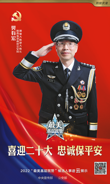 人物檔案樊有宏,男,漢族,陜西洛南人,1967年8月出生,大學(xué)學(xué)歷,中共黨員,1989年參加公安工作,現(xiàn)任洛南縣公安局刑偵大隊(duì)副大隊(duì)長(zhǎng)。從警33年來(lái),樊有宏主勘各類刑事案件現(xiàn)場(chǎng)4000余起,利用刑事技術(shù)直接破獲各類刑事案件600余起,參與偵破重特大刑事案件100余件,利用刑事技術(shù)為破獲刑事案件提供證據(jù)1500余起。樊有宏先后50余次受到部省市表彰獎(jiǎng)勵(lì),被評(píng)為“全省公安機(jī)關(guān)刑事科學(xué)技術(shù)標(biāo)兵”、全省公安機(jī)關(guān)“汪勇式先進(jìn)個(gè)人”。2017年5月被評(píng)為全國(guó)優(yōu)秀人民警察,2022年5月被評(píng)為全國(guó)特級(jí)優(yōu)秀人民警察,2022年9月被評(píng)為全國(guó)“最美基層民警”。