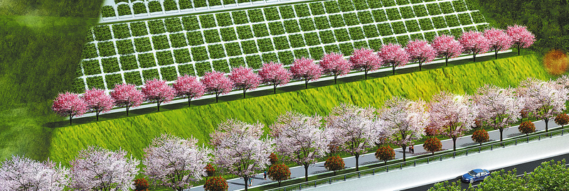 環(huán)城西路二期道路項(xiàng)目南起馬蓮峪立交,北與北新街相交,全長(zhǎng)2100米。綠化工程包括行道樹(shù)和部分中分帶綠化、景觀綠道綠化以及邊坡綠化。道路主線綠化總面積8329㎡,邊坡綠化總面積約3.55萬(wàn)㎡。道路綠化以大喬木行道樹(shù)為背景林帶,點(diǎn)綴開(kāi)花喬木,對(duì)沿線的擋墻護(hù)坡進(jìn)行立體綠化,體現(xiàn)生態(tài)理念。
