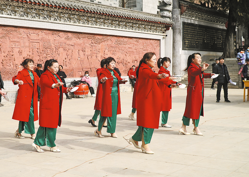 1月25日,在山陽縣漫川關(guān)鎮(zhèn)雙戲樓廣場,龍灣小區(qū)民樂匯藝術(shù)團為慶祝新年到來,表演了獨唱、群口快板、小品等精彩節(jié)目,吸引群眾駐足觀看。 (本報記者 方 方 攝)