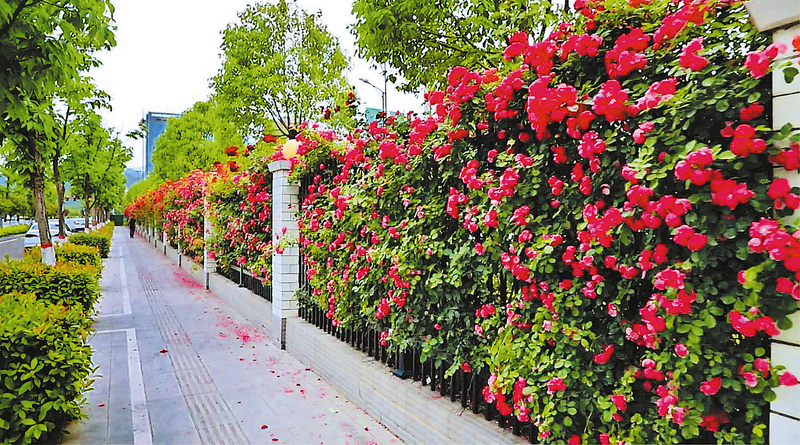 初夏時(shí)節(jié),風(fēng)暖人間。行走在商鞅大道兩旁,姹紫嫣紅的月季