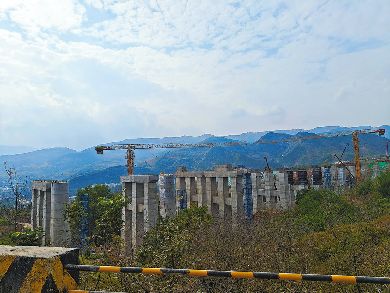在漫川關(guān)跨福銀高速立交特大橋施工現(xiàn)場,分布在高空和地面作業(yè)點上的建設(shè)者加班加點,演繹著“速度與激情”。站在高處眺望,但見聳立的橋墩跨越山川、河流、村莊,一路奔越向前。