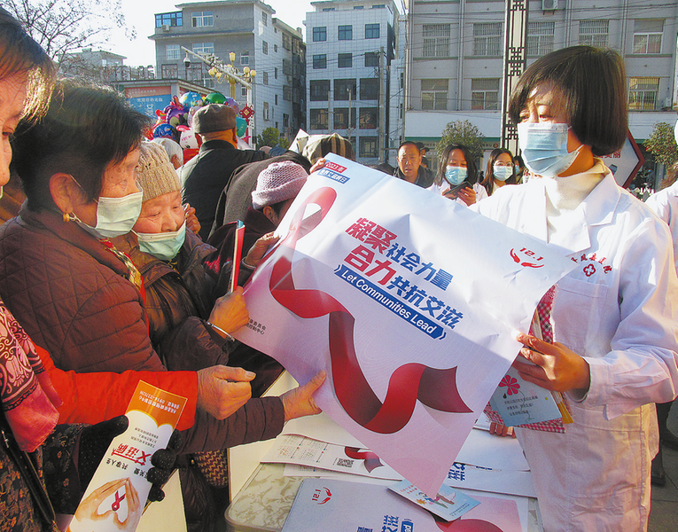 12月1日,丹鳳縣衛(wèi)健局組織城區(qū)各醫(yī)療單位在縣城中心廣場(chǎng)開展以“凝聚社會(huì)力量,合力共抗艾滋”為主題的宣傳活動(dòng),向群眾普及醫(yī)療知識(shí),發(fā)放宣傳主題海報(bào)、艾滋病防治讀本、年畫等各類宣傳資料。 (本報(bào)通訊員 劉春榮 攝)