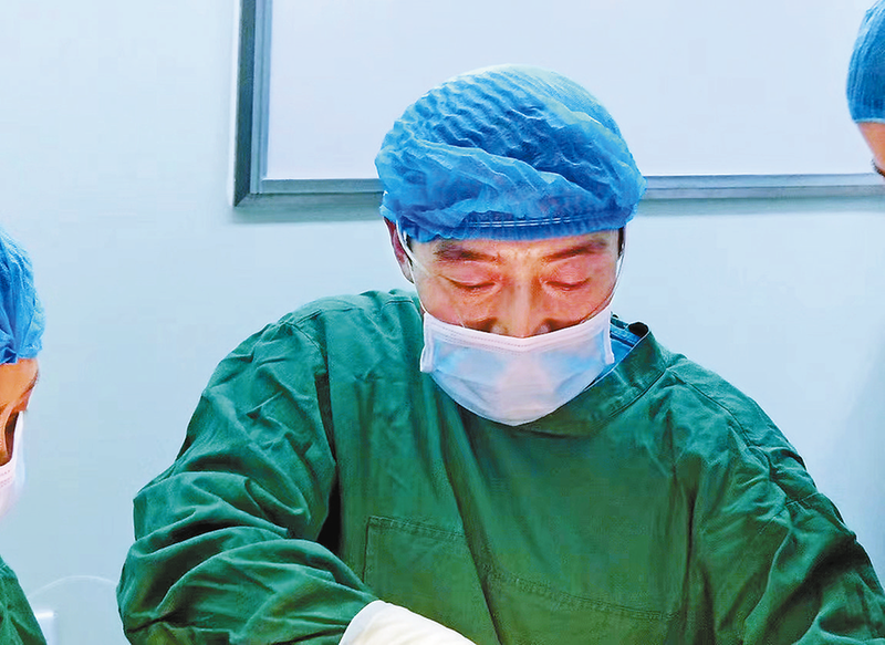 在這種情況下,趙岳峰立即做好術(shù)前準(zhǔn)備,決定由他主刀進(jìn)行手術(shù)。由于患者要做雙側(cè)開(kāi)顱,手術(shù)時(shí)間長(zhǎng)達(dá)8小時(shí),過(guò)程中他明顯感覺(jué)身體缺氧、頭昏頭痛,最后是吸著氧氣才順利完成手術(shù)。術(shù)后患者恢復(fù)良好,出院時(shí)患者的語(yǔ)言及肢體功能已基本恢復(fù)正常,這也成為阿里地區(qū)人民醫(yī)院第一例顱骨修補(bǔ)術(shù)。3個(gè)月后,他再次成功對(duì)該患者進(jìn)行了雙側(cè)顱骨缺損鈦網(wǎng)修補(bǔ)手術(shù)。