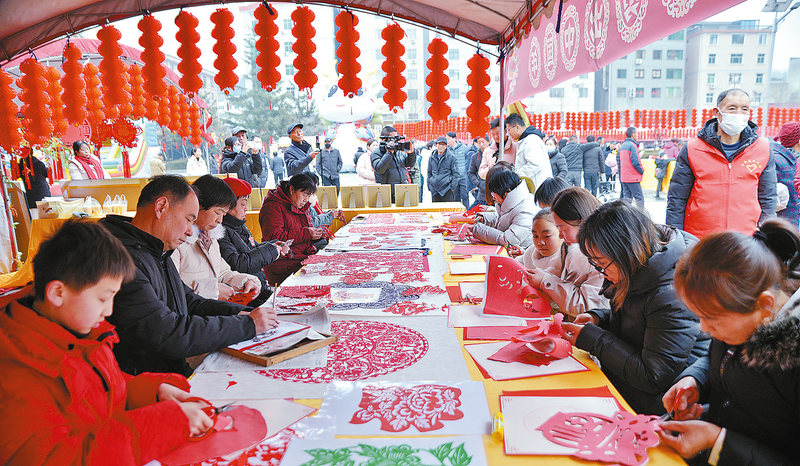 龍年春節(jié)前夕,我市廣泛開展形式多樣的文化藝術活動,營造了歡樂、喜慶、祥和的節(jié)日氛圍。圖為在來洛南趕大集·品山城煙火味系列活動中,人們興致勃勃地體驗非遺剪紙的樂趣。