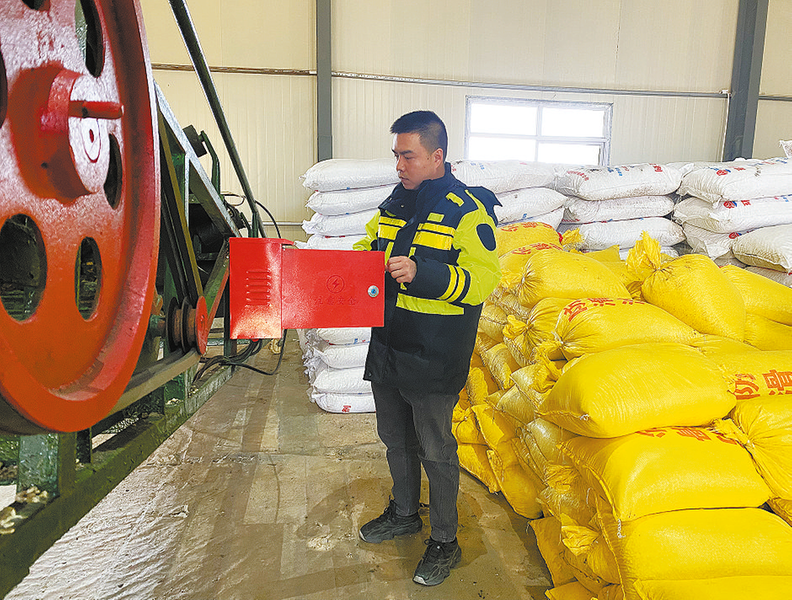 2月11日,養(yǎng)護(hù)工作人員李天寵在庫房檢查傳輸帶運(yùn)作情況。