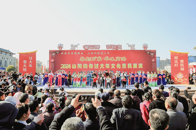 ?、?月17日,山陽縣新春廣場文藝展演活動吸引了眾多群眾前來觀看。 (本報(bào)記者 鞏琳璐 攝)