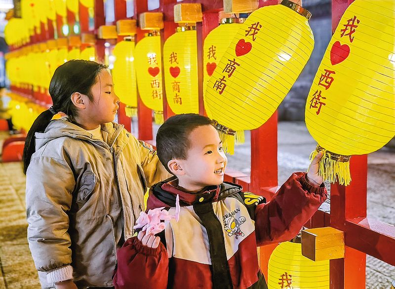 ?、?月20日,在商南縣城西街古城里,流光溢彩的夜景燈光和夜市的煙火氣息融合在一起,營造出濃濃的節(jié)日氛圍。