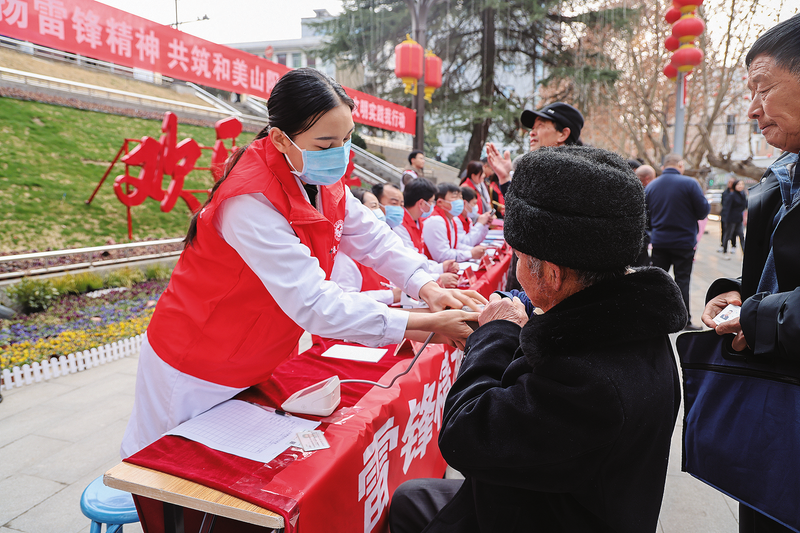 ?為進(jìn)一步弘揚(yáng)雷鋒精神和志愿服務(wù)精神,3月5日,山陽(yáng)縣人民醫(yī)院組織呼吸內(nèi)科、消化內(nèi)科、交大一附院頜面外科等5個(gè)??茦I(yè)務(wù)骨干組成志愿服務(wù)隊(duì),在縣政府廣場(chǎng)開(kāi)展學(xué)雷鋒健康義診活動(dòng),用實(shí)際行動(dòng)詮釋雷鋒精神。 (本報(bào)記者 張 英 攝)
