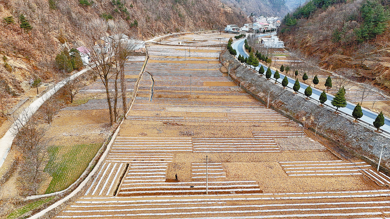 3月8日,商州區(qū)麻街鎮(zhèn)一行行種植好的土豆覆蓋著地膜,如同一條條白色綢帶,在大地上繪出橫豎錯綜的線條。