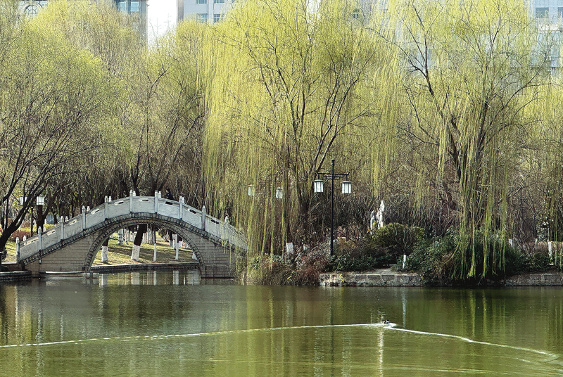 3月14日,市區(qū)蓮湖公園春色怡人,柳樹(shù)吐出青翠的嫩芽,滿(mǎn)目的碧綠昭示著萌動(dòng)的春意。 (本報(bào)記者 胡 蝶 攝)