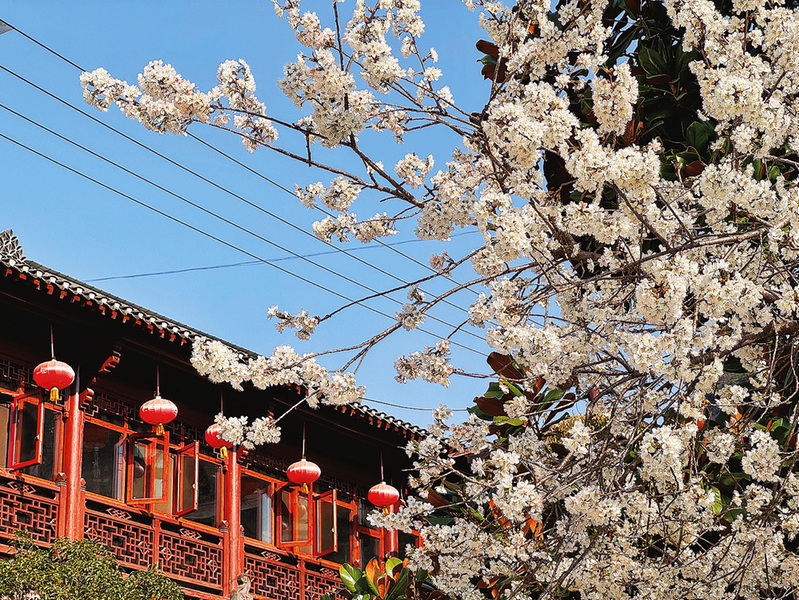 在我市,春天的腳步最先抵達(dá)了山陽(yáng)縣漫川關(guān)鎮(zhèn)。圖為3月15日漫川關(guān)鎮(zhèn)小河口村里櫻桃花和民居相呼應(yīng)。 (本報(bào)記者 楊 鑫 攝)