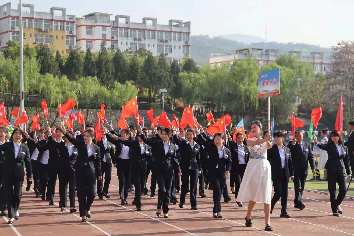 伴隨著激昂的《運動員進行曲》,國旗護衛(wèi)隊護衛(wèi)著鮮艷肅穆的五星紅旗邁步而至,彩旗方陣、教職工方陣、各學(xué)院運動員方陣依次入場。整齊的步伐和嘹亮的口號,展現(xiàn)出商洛學(xué)院與祖國同頻共振、與時代同向同行的精神風(fēng)貌。各學(xué)院方陣還結(jié)合專業(yè)特色融入創(chuàng)意元素,一展風(fēng)姿。