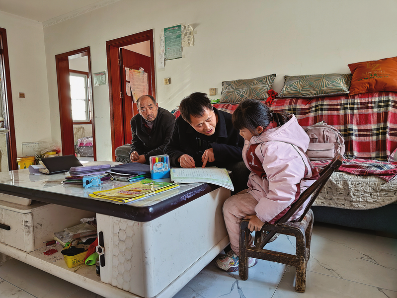 陳波入戶為重點(diǎn)監(jiān)測(cè)戶的孩子輔導(dǎo)作業(yè)