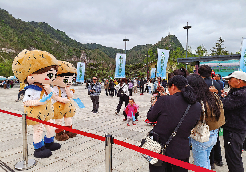 游客爭相與文創(chuàng)產(chǎn)品“核桃娃”合影