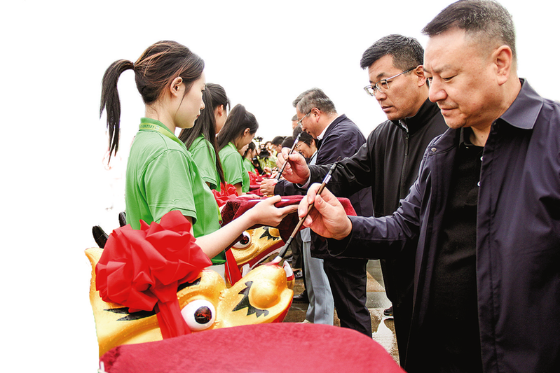 9時(shí)30分,丹江河面,一艘艘龍舟“蓄勢(shì)待發(fā)”,等候精彩演繹水上龍舟的“速度與激情”。隨著嘉年華開幕式及龍舟點(diǎn)睛儀式的舉行,此次龍舟公開賽正式拉開帷幕。