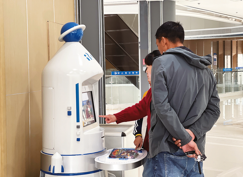 在洛南縣圖書館,讀者用自助借閱機借還書籍。