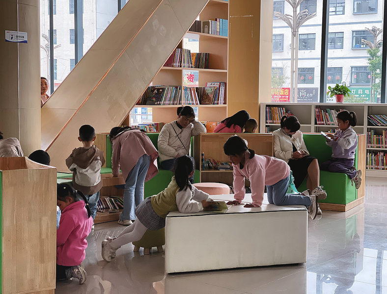 “五一”假期,在洛南縣圖書館,家長帶著孩子享受閱讀時光。