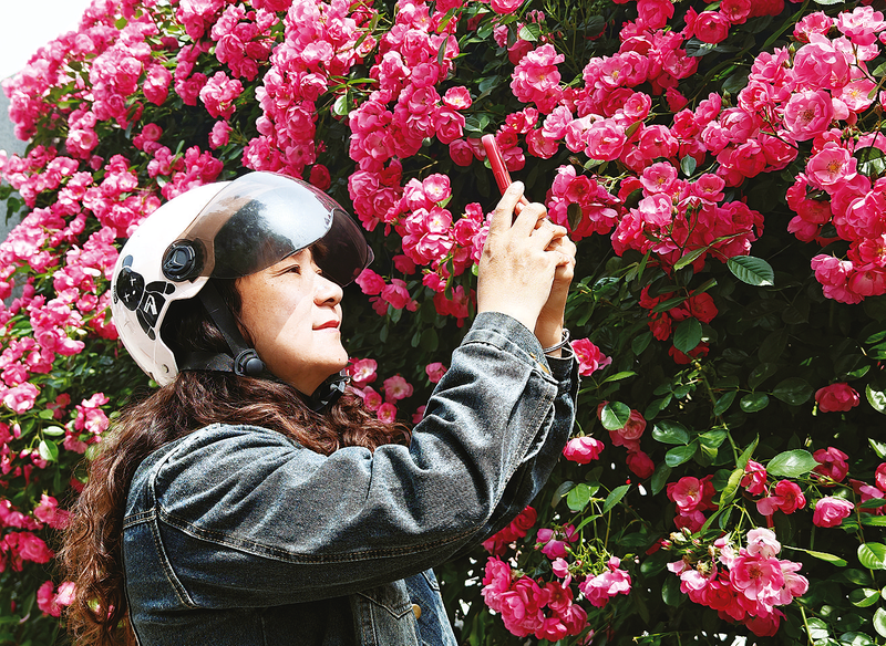 市婦幼保健院大門前,盛開的月季千姿百態(tài),芳菲四溢;銀杏公園的月季在陽光下蓬勃生長,游園的市民望著婀娜多姿的花朵嘖嘖贊嘆,紛紛駐足欣賞、拍照;市體育運動中心圍墻上的月季色彩絢爛瑰麗,猶如大自然的調(diào)色盤;北新街東段商洛學院門口的薔薇花一朵挨著一朵,一片連著一片,如瀑布一般在校門口形成了一面美麗的花墻,吸引了眾多市民前來賞花拍照打卡……小城猶如花的海洋,紅的像火,粉的像霞,白的像雪,黃的像緞,一叢叢、一簇簇、一片片,裝點著初夏的浪漫。
