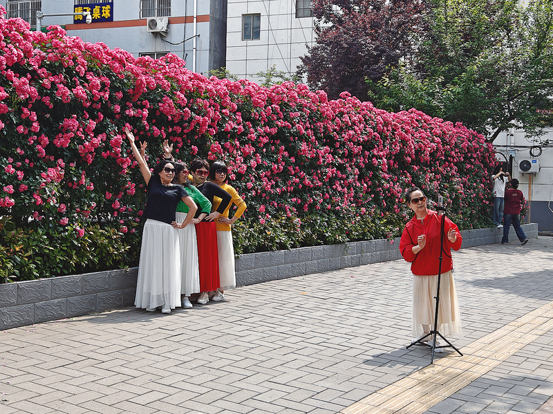 嬌艷欲滴的月季吸引行人駐足欣賞