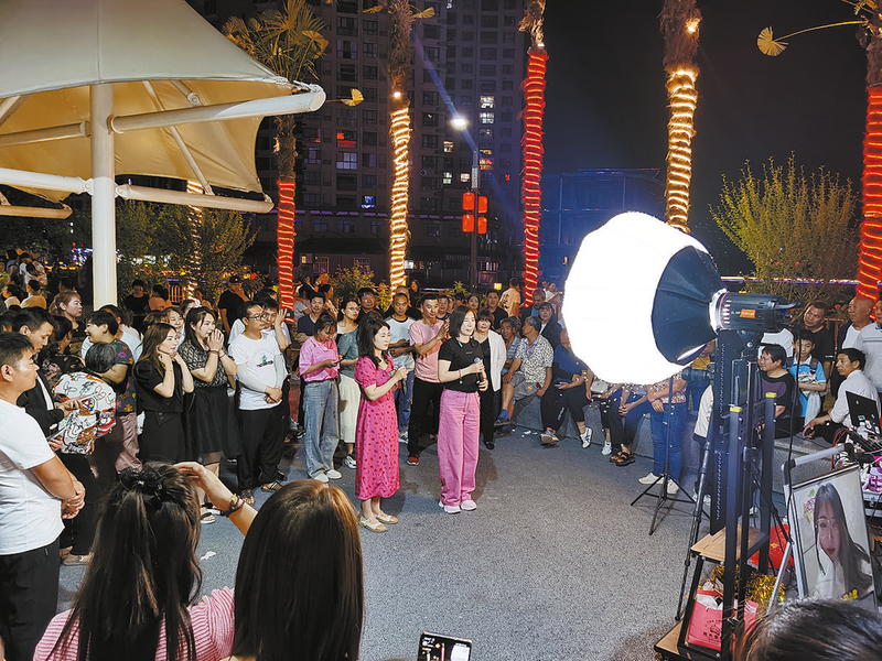 在鎮(zhèn)安,網紅趁著夜晚人們休閑的時間,在廣場上開起直播,利用網絡平臺賺錢的同時,也帶給了市民新穎的夜間娛樂方式。