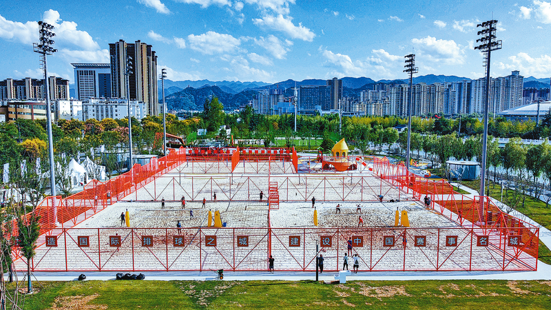 8月20日,中國(guó)沙灘排球青年隊(duì)和新西蘭沙灘排球U19國(guó)家隊(duì)在商州群眾運(yùn)動(dòng)公園沙排訓(xùn)練場(chǎng)地進(jìn)行適應(yīng)性訓(xùn)練。該場(chǎng)地毗鄰丹江,環(huán)境優(yōu)美,是2024國(guó)際排聯(lián)沙灘排球U19世界錦標(biāo)賽副場(chǎng)地。