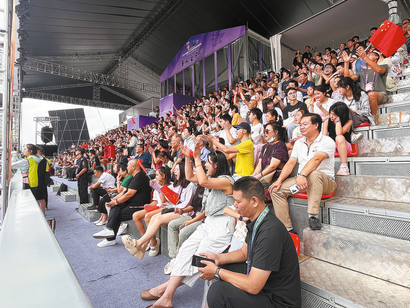 觀眾為中國(guó)隊(duì)歡呼助威 (本報(bào)記者 張 英 攝)