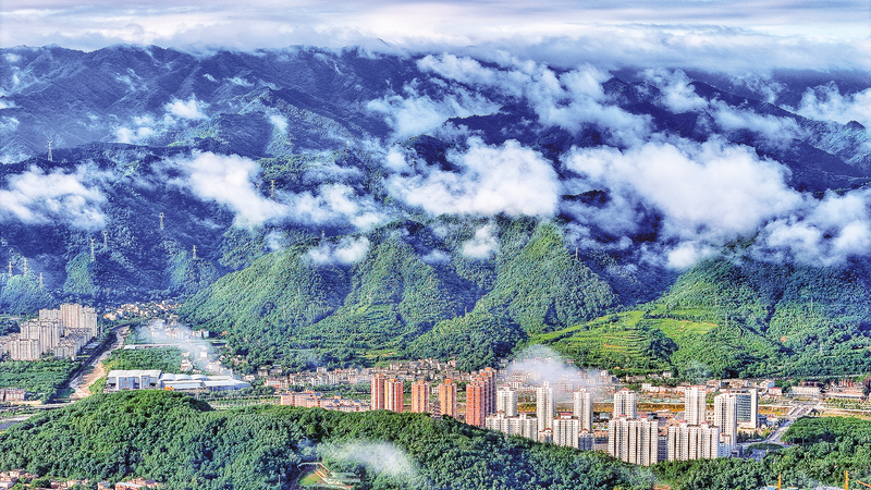 雨后的鶴城峰巒如洗、青山疊翠。(本報(bào)記者 楊 鑫 攝)
