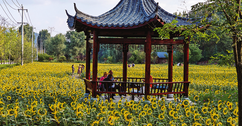 9月15日,商州區(qū)江山景區(qū)的油葵花盛開,吸引了眾多游客前來(lái)打卡。
