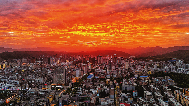 8月20日,夕陽(yáng)西下,商州城區(qū)絢麗的晚霞染紅了半邊天,美麗壯觀。