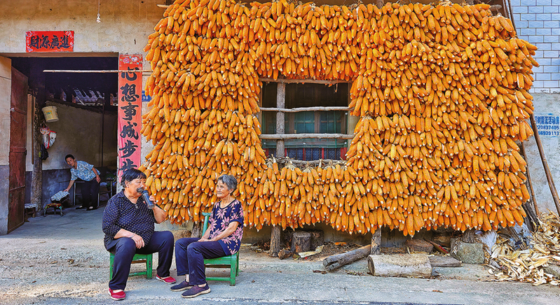 9月16日,商州區(qū)牧護(hù)關(guān)鎮(zhèn)一農(nóng)戶家,金色的玉米將房屋裝點(diǎn)得別有生趣。