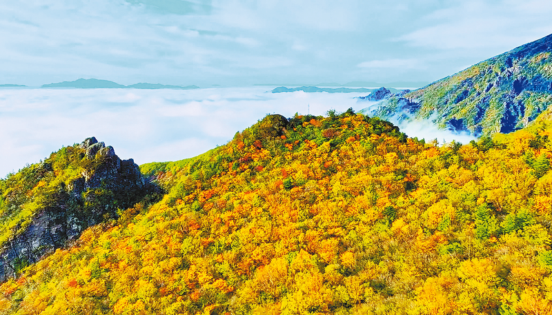 在鎮(zhèn)安的木王山,陽光照耀下的山間樹葉呈現(xiàn)出金黃與火紅的斑斕色彩,宛如整個山林在訴說著秋天的故事。當(dāng)你登上塔云山頂,斜陽的余暉中,你會目睹如火焰般絢爛的紅葉,體驗(yàn)黃昏時刻那迷人的秋色。而清晨的松海云霧,也是這場秋日盛宴中不容錯過的美景。