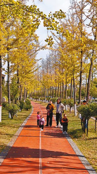 游人在商州區(qū)的銀杏公園感受獨(dú)特秋景