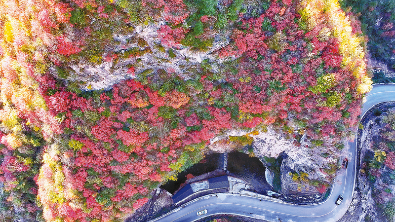 位于商州區(qū)牧護(hù)關(guān)鎮(zhèn)的秦嶺峽口紅葉迎來最佳觀賞期