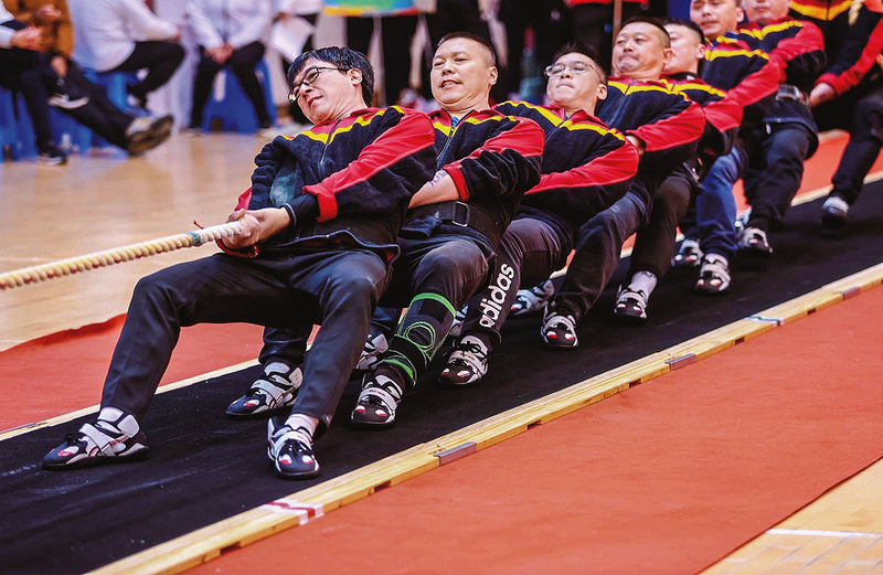 起繩,拉緊,預備……隨著裁判的一聲令下,選手們兩腳蹬地、緊握長繩、重心下沉、身體后仰,在觀眾的加油吶喊聲中全力以赴,爆發(fā)出渾身力量與對手展開角力。