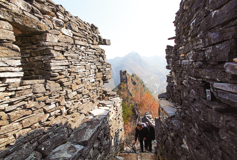 在那亂世,人們?yōu)榱吮Wo家人的生命財產(chǎn)安全,不得已便選擇險要、隱蔽之處,大量修筑山寨,藏匿財產(chǎn),抵御來犯之敵,保護生命安全?!渡疥柨h志》載:“縣境之內(nèi),山寨星羅棋布,凡有居民聚集之處,附近險陡山巔都有山寨建筑。山寨之大量興建,始于明末崇禎時,盛于清代嘉、同間。”還記載:嘉慶九年(公元1804年),經(jīng)略大臣將帥鎮(zhèn)壓白蓮教之后,陜西巡撫陸有仁奏言:“商州、山陽、鎮(zhèn)安、商南、洛南五處,責成潼商道,務必每邑在各有險可守之處,號召地方自行修筑寨子,堵御要隘,以杜窺伺而避戰(zhàn)亂。”當時,全縣修筑石寨200余處。經(jīng)歷數(shù)百年,尚存百余座?!舵?zhèn)安縣文史資料》里也記載,鎮(zhèn)安山寨大多創(chuàng)建于明末清初,石砌的山寨就地取材,依山為基,以石筑墻,“干打壘”砌筑,多為當?shù)孛扛粦魻款^修建。陜西省第三次文物普查發(fā)現(xiàn),鎮(zhèn)安縣現(xiàn)存明清建筑的古山寨遺址200余處。鎮(zhèn)安的倪家寨、鉆天寨、矛坡寨,商州的木瓜寨、天寶寨、碉南寨、鳳凰寨、黃花寨、將軍寨,山陽的土門寨、剪口寨、扮演寨、天蓬山寨、雙峰寨、青龍寨,一處處不勝枚舉。這些星羅棋布的山寨,雄居于各險要山頭和懸崖峭壁,不失為一大景觀。