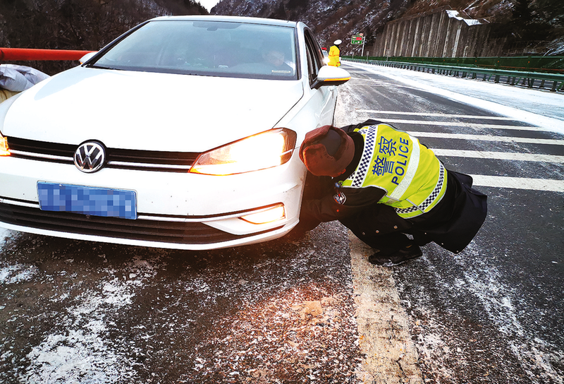 在銀裝素裹的寒冷冬夜,商洛市公安局交警支隊(duì)高速公路大隊(duì)的民警們冒著風(fēng)雪,仔細(xì)排查過往車輛,提醒著司機(jī)注意安全,不要盲目駛?cè)敫咚?。他們身上的熒光綠警服,如同寒夜里的一盞盞明燈,默默守護(hù)著城市的萬家燈火,全力守護(hù)高速公路過往司乘的生命安全。