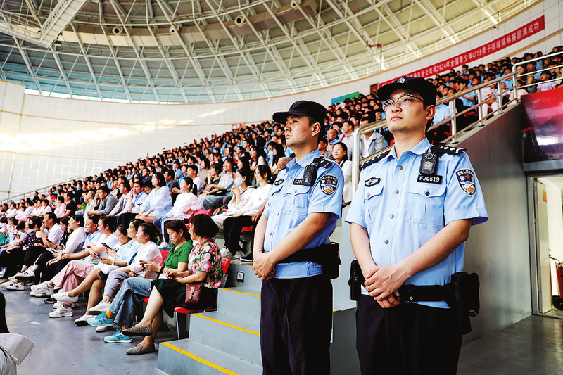 2024年5月14日至23日,市公安機關(guān)精心組織、多措并舉,加強賽區(qū)治安管控力度,累計投入警力2700余人次,全力確保全國青少年U19男子排球錦標賽各項比賽活動安全有序進行。(本報通訊員 王 丹 攝)