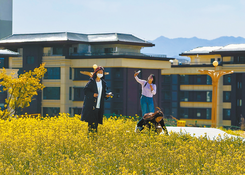 沿著環(huán)城北路前行,一大片油菜花地映入眼簾。金黃的油菜花層層疊疊,猶如一片金色的海洋。不少家庭選擇閑暇時間驅車前來,與孩子在花海中奔跑嬉戲,感受大自然的饋贈。