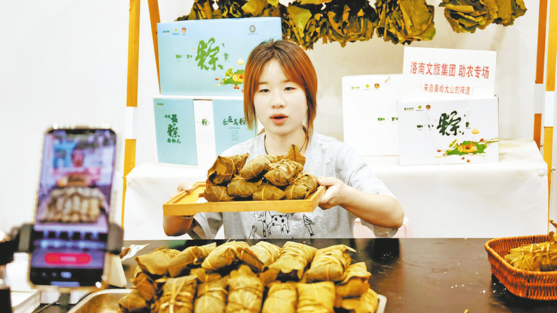 專業(yè)主播在線上售賣洛南槲葉粽子