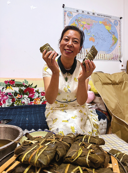 “葉子要裹緊,繩子多繞幾圈,下鍋時(shí)記得翻轉(zhuǎn)一圈,這樣煮的時(shí)候才不會(huì)散,這些都是跟著媽媽學(xué)的做法。”她的話語(yǔ)里,藏著對(duì)母親的思念,也藏著對(duì)傳統(tǒng)的堅(jiān)守。