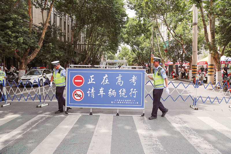 高考期間,商州交警嚴處考點周邊車輛亂停亂放、亂鳴喇叭等行為,并對城區(qū)3個考點周邊道路實施臨時交通管制。