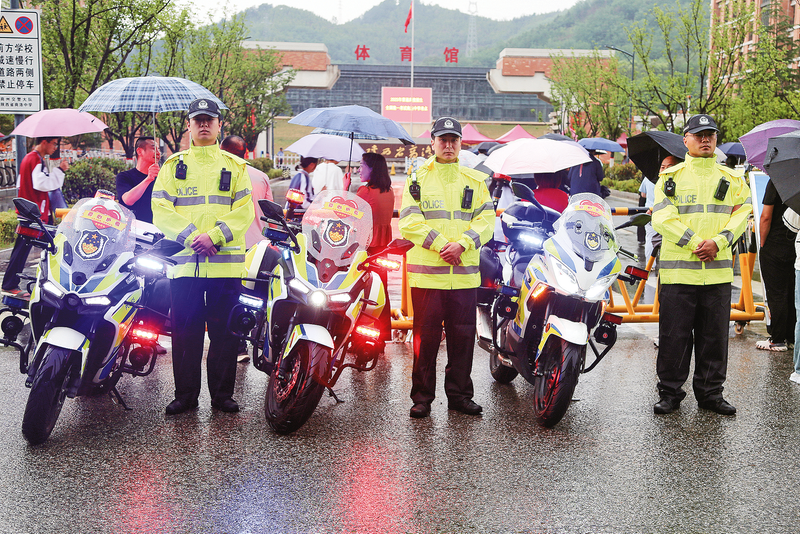 6月7日,在商洛中學考點執(zhí)勤的商洛市公安局商州分局巡特警大隊民警郭夢陽告訴記者:“商洛中學考點共計投入警力40多名,具體承擔學校周邊治安秩序維護,為考生進出入開辟綠色通道、疏導交通道路、管控周邊噪音、突發(fā)情況處置的工作。”據了解,高考期間,商洛市公安局商州分局每日投入警力180余人,把服務高考放在首要位置,圍繞校園安全及周邊環(huán)境整治,開辟服務考生綠色通道等重點環(huán)節(jié),營造高考安靜環(huán)境。同時,全面強化安保措施、落實延時服務、24小時值班等制度,全力護航莘莘學子的夢想啟航。