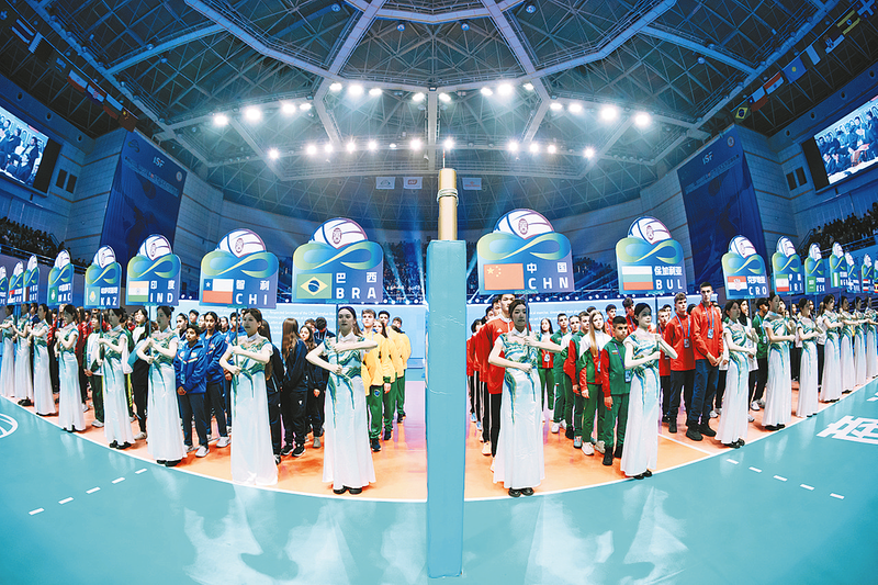 U15世界中學生排球錦標賽開幕式上,各國代表隊齊聚一堂。
