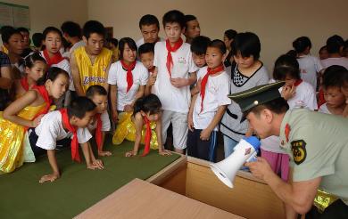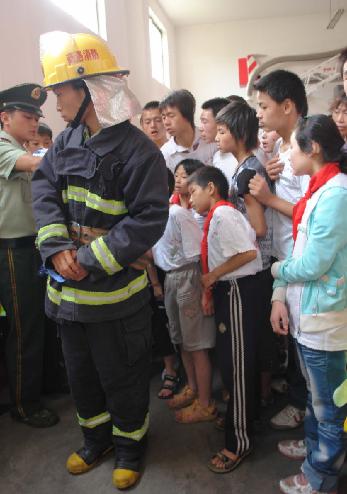 隨后,消防戰(zhàn)士通過手語老師的傳遞,為70多名殘疾兒童講解了家庭防火、火災逃生、緊急避險等知識,并詳細參觀了消防車、消防帽、消防衣等設施。在中隊的軍營,豆腐塊狀的杯子、擺放整齊的臉盆、干凈整潔的床單呈現(xiàn)在了這些小家伙面前,一個聾啞兒童用手語說,“今天的活動不但使我了解到許多消防知識,而且更讓我體會到了消防戰(zhàn)士的辛酸。他們整潔的軍營對我教育很大,想想我們的宿舍,我真的很慚愧。”