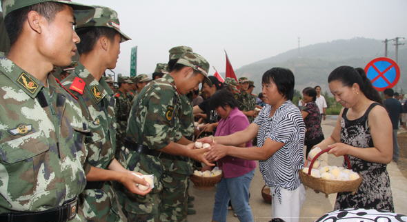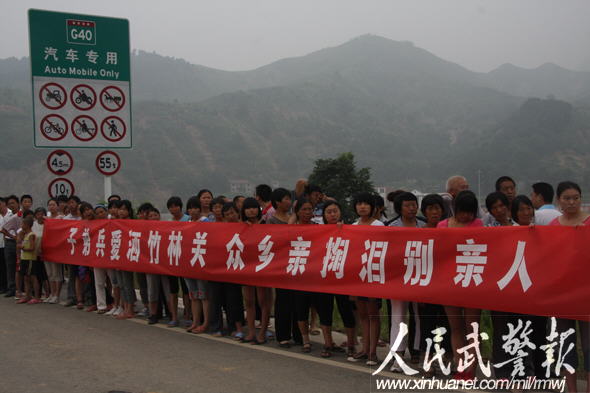 經(jīng)過武警陜西總隊400余名官兵連續(xù)11天的奮戰(zhàn),8月7日,陜西省商洛市丹鳳縣竹林關(guān)鎮(zhèn)人民群眾已基本恢復正常生產(chǎn)、生活秩序。武警官兵凱旋時,竹林關(guān)鎮(zhèn)的鄉(xiāng)親們紛紛涌向部隊途經(jīng)的路口,揮淚相送、依依惜別。