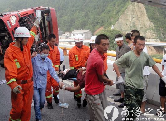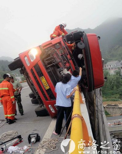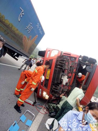 據(jù)正在搶救現(xiàn)場的商州消防中隊指導員劉欣介紹,貨車是在下立交橋時速度太快,直接翻車的。當時車內共兩個人,一人被夾在駕駛室內,出不來,受傷嚴重,情況危急。他們是6點41分接到報警的。帶隊立即趕到了現(xiàn)場。