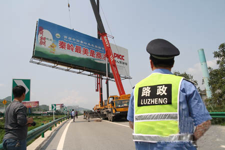 為凈化行車環(huán)境,提升高速公路形象,消除安全隱患,陜西省交通建設(shè)集團(tuán)公司西商分公司商州西管理所于8月26日對三處拒不整改的廣告牌進(jìn)行強(qiáng)制拆除和清理。