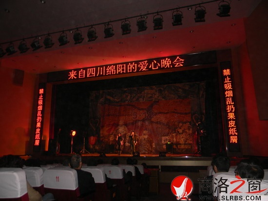 本網(wǎng)訊(崔旭紅)11月3日晚7點,在商州區(qū)影劇院舉行了一場由四川綿陽安縣友誼藝術(shù)團編排演出的"巴蜀情"大型情景歌舞詩劇文藝晚會。晚會主要以"抗災(zāi)自救 重建家園"為主題,弘揚抗震救災(zāi)偉大精神,歌頌抗震救災(zāi)中可歌可泣的英雄事跡,再現(xiàn)災(zāi)區(qū)人民自強不息、重建家園的信心和決心。晚會的節(jié)目有歌舞、小品、詩朗誦、情景短劇等。