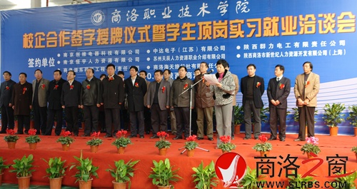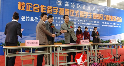 商洛職業(yè)技術(shù)學(xué)院這次和省內(nèi)外8家企業(yè)簽訂了校企合作協(xié)議。其中,中達(dá)電子(江蘇)有限公司、陜西群力電工有限責(zé)任公司、陜西商洛市新世紀(jì)人力資源開發(fā)有限公司(上海)將成為商洛職業(yè)技術(shù)學(xué)院實(shí)習(xí)基地,蘇州天辰人力資源職業(yè)介紹所有限公司將成為商洛職業(yè)技術(shù)學(xué)院學(xué)生實(shí)習(xí)就業(yè)駐蘇州辦事處,南京恒宇人力資源有限公司為商洛職業(yè)技術(shù)學(xué)院學(xué)生實(shí)習(xí)就業(yè)駐南京辦事處,商洛源東裝飾工程有限責(zé)任公司為商洛職業(yè)技術(shù)學(xué)院藝術(shù)設(shè)計專業(yè)實(shí)習(xí)基地,商洛海天旅行社有限責(zé)任公司為商洛職業(yè)技術(shù)學(xué)院旅游管理專業(yè)實(shí)習(xí)基地,南京創(chuàng)維電器科技有限公司授予商洛職業(yè)技術(shù)學(xué)院"南京創(chuàng)維電器科技有限公司--員工培訓(xùn)基地"。